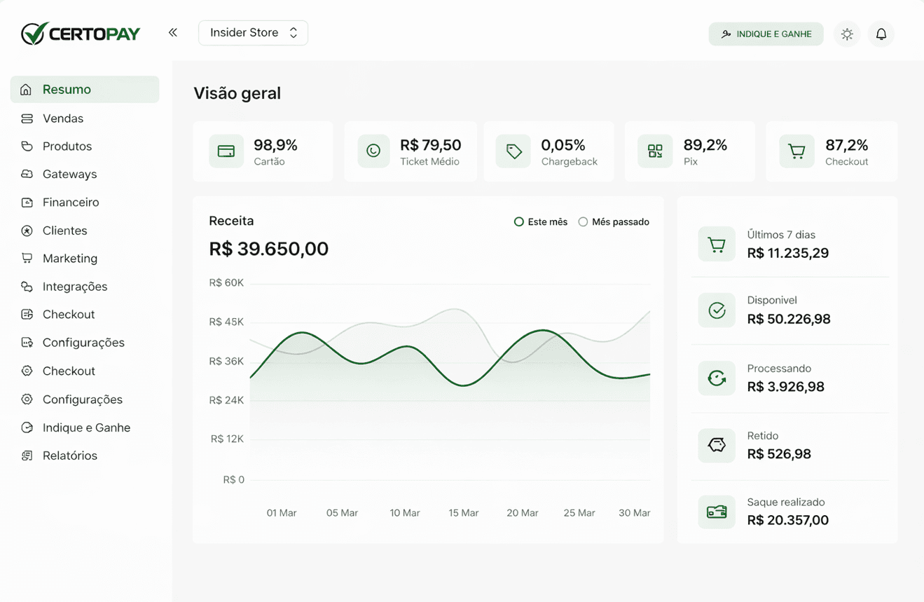 Alta aprovação, segurança avançada com checkout 100% personalizável. Escale sua operação de forma profissional e garanta mais conversões.